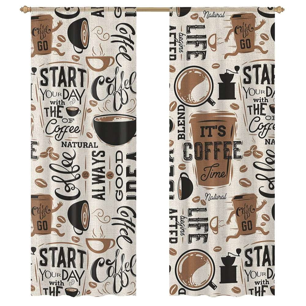 Coffee Themed Sheer Window Curtains for Living Room Kitchen Bedroom