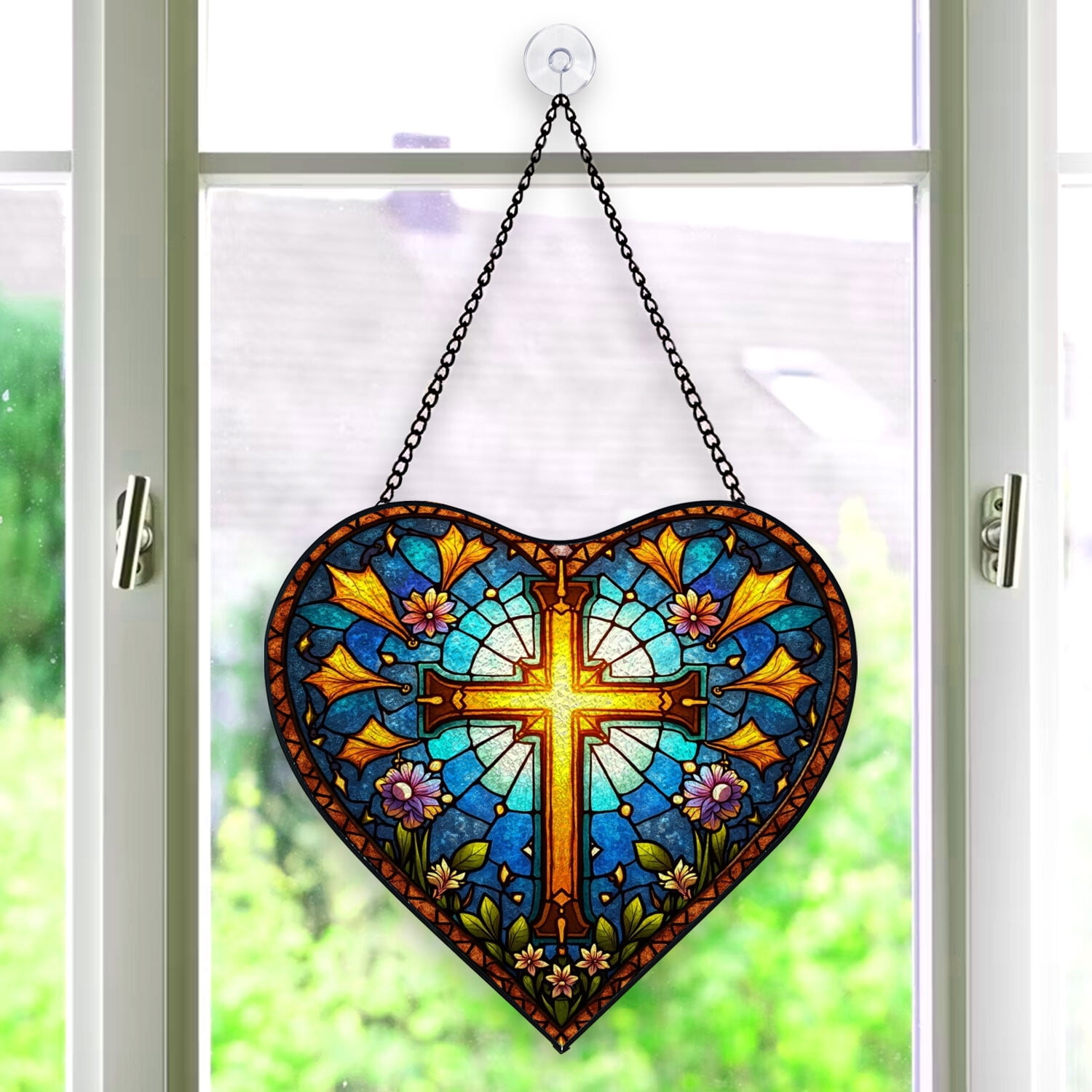 Cross Window Hanging Stained Glass Christmas Cross Suncatchers for