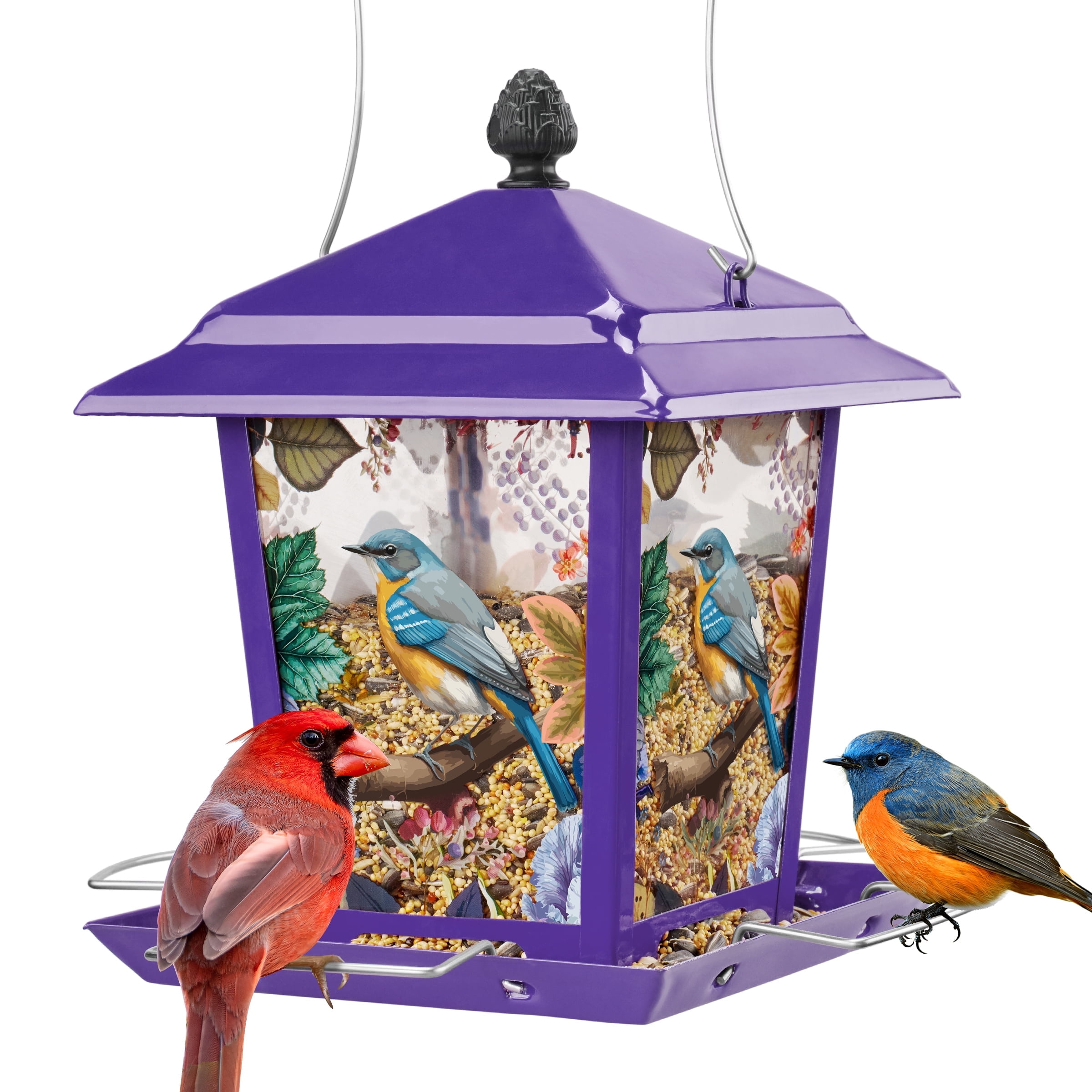 Kingsyard Hopper Metal Wild Bird Feeder for Outdoor Hanging with 4