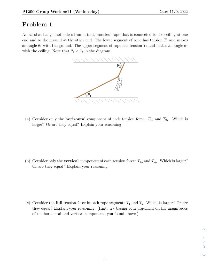 Solved An acrobat hangs motionless from a taut massless Chegg com