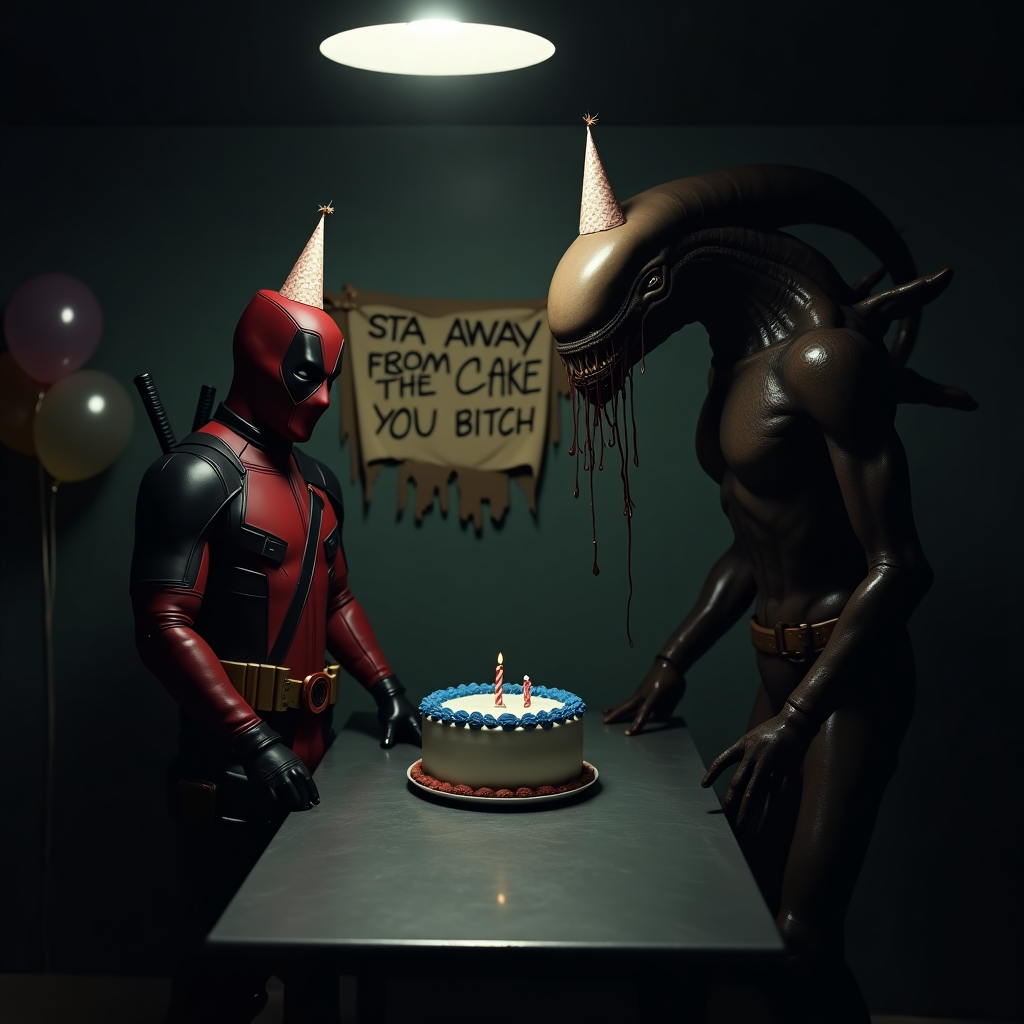 A chilling and dramatic scene of a weathered statue