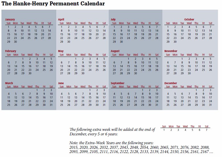 Hanke Henry Permanent Calendar proposes to make every year identical