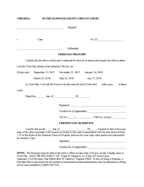 Fillable Online VIRGINIA: IN THE HANOVER COUNTY CIRCUIT COURT Fax Email