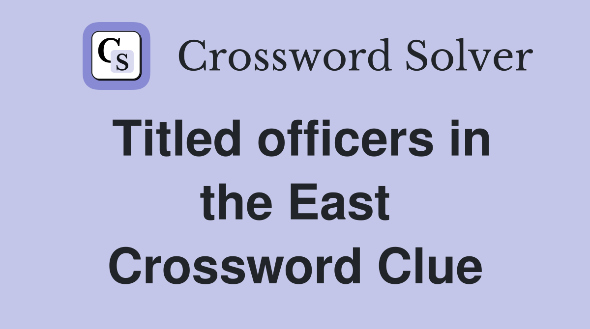 Titled officers in the East Crossword Clue Answers Crossword Solver
