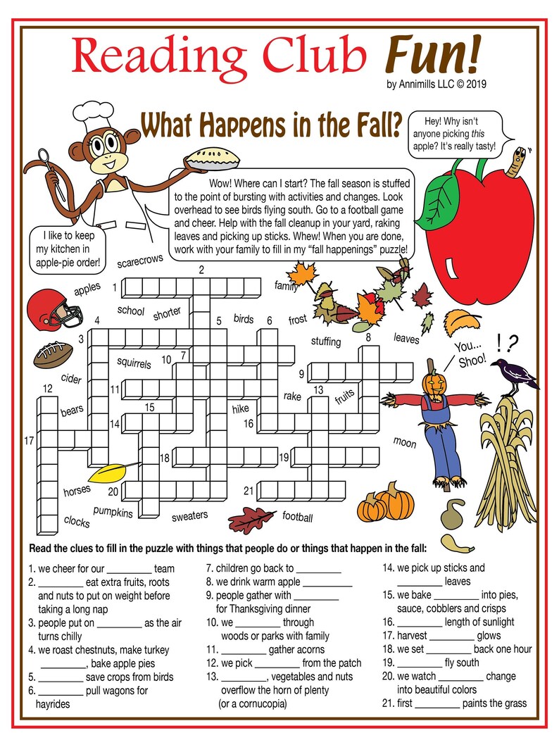 What Happens in the Fall? Printable Crossword Puzzle Etsy
