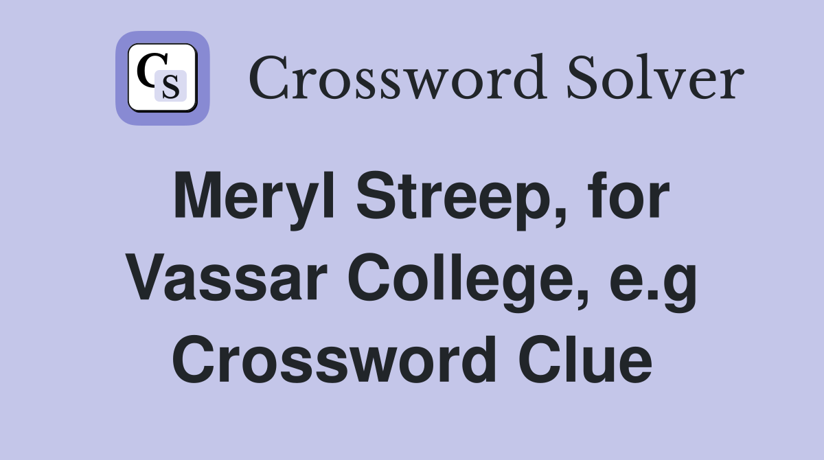 Meryl Streep for Vassar College e g Crossword Clue Answers