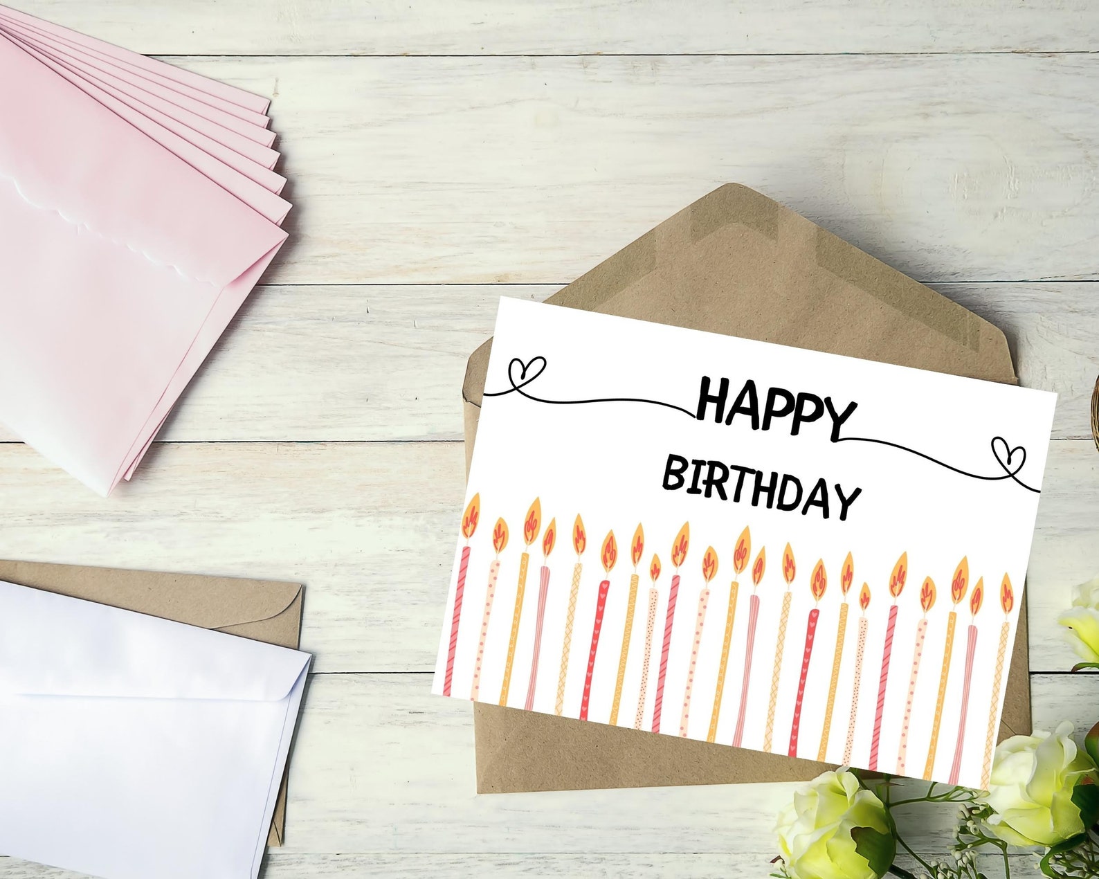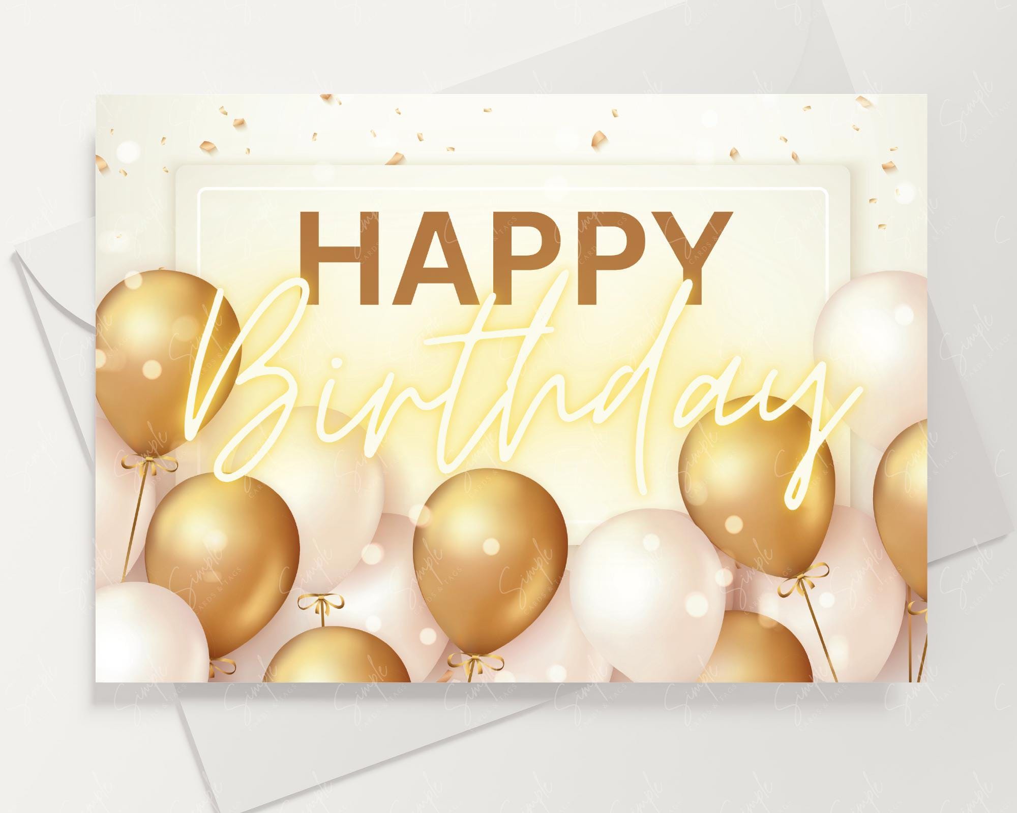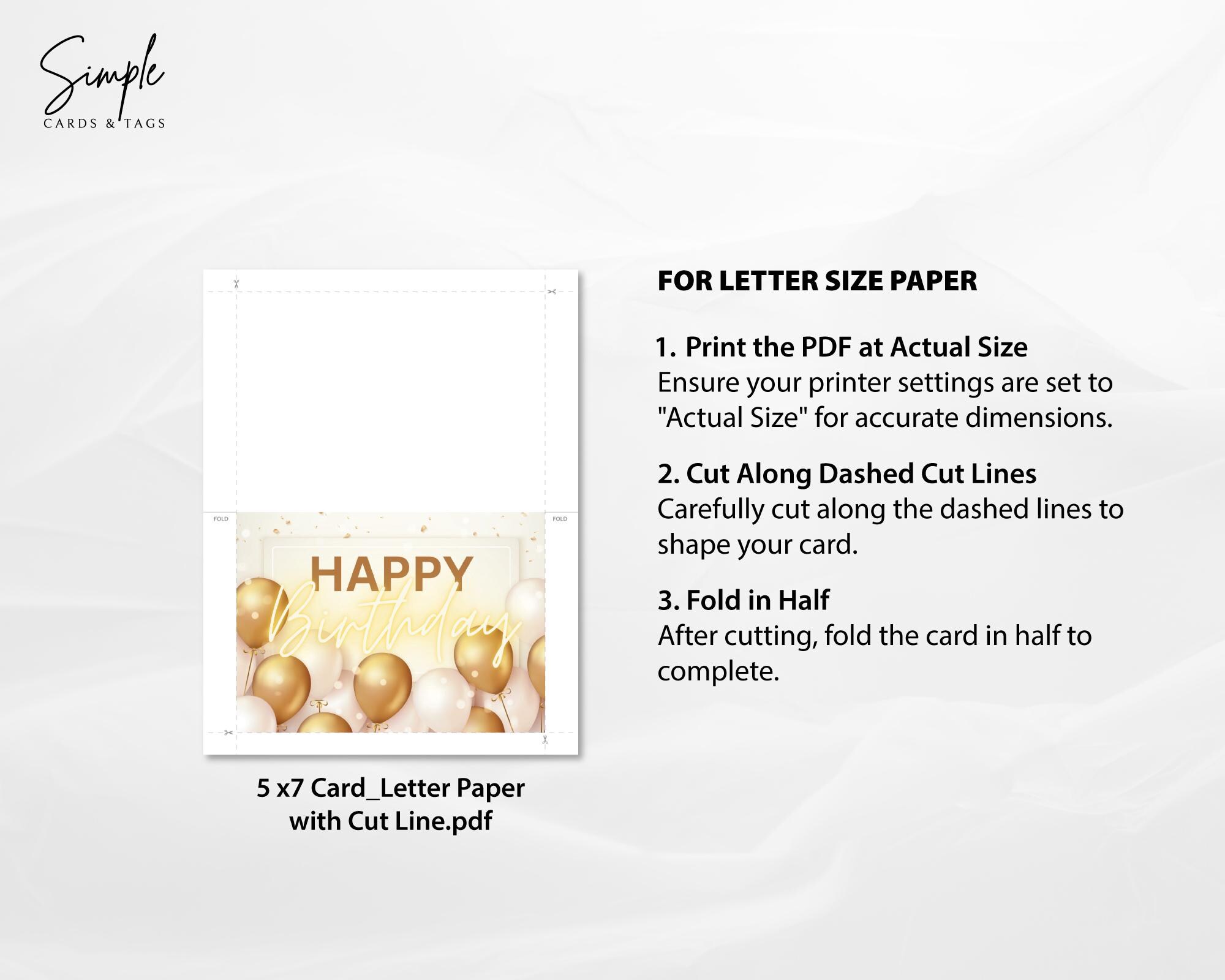 Printable Happy Birthday Card Printable PDF Birthday Card With Envelope
