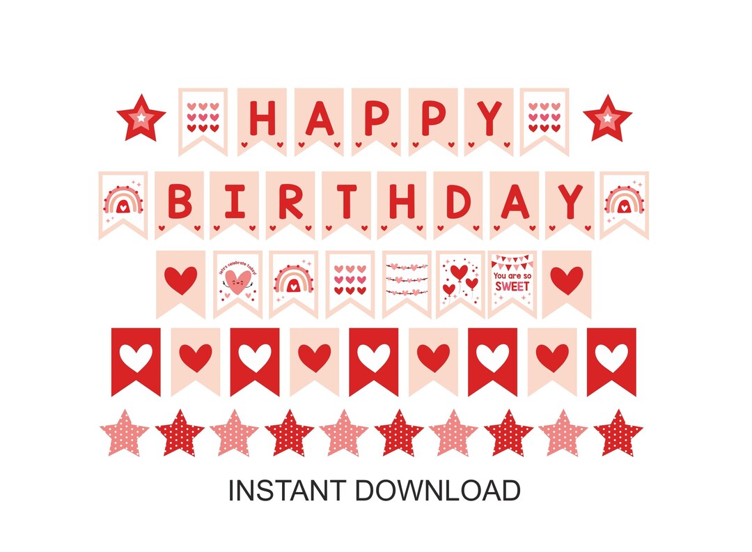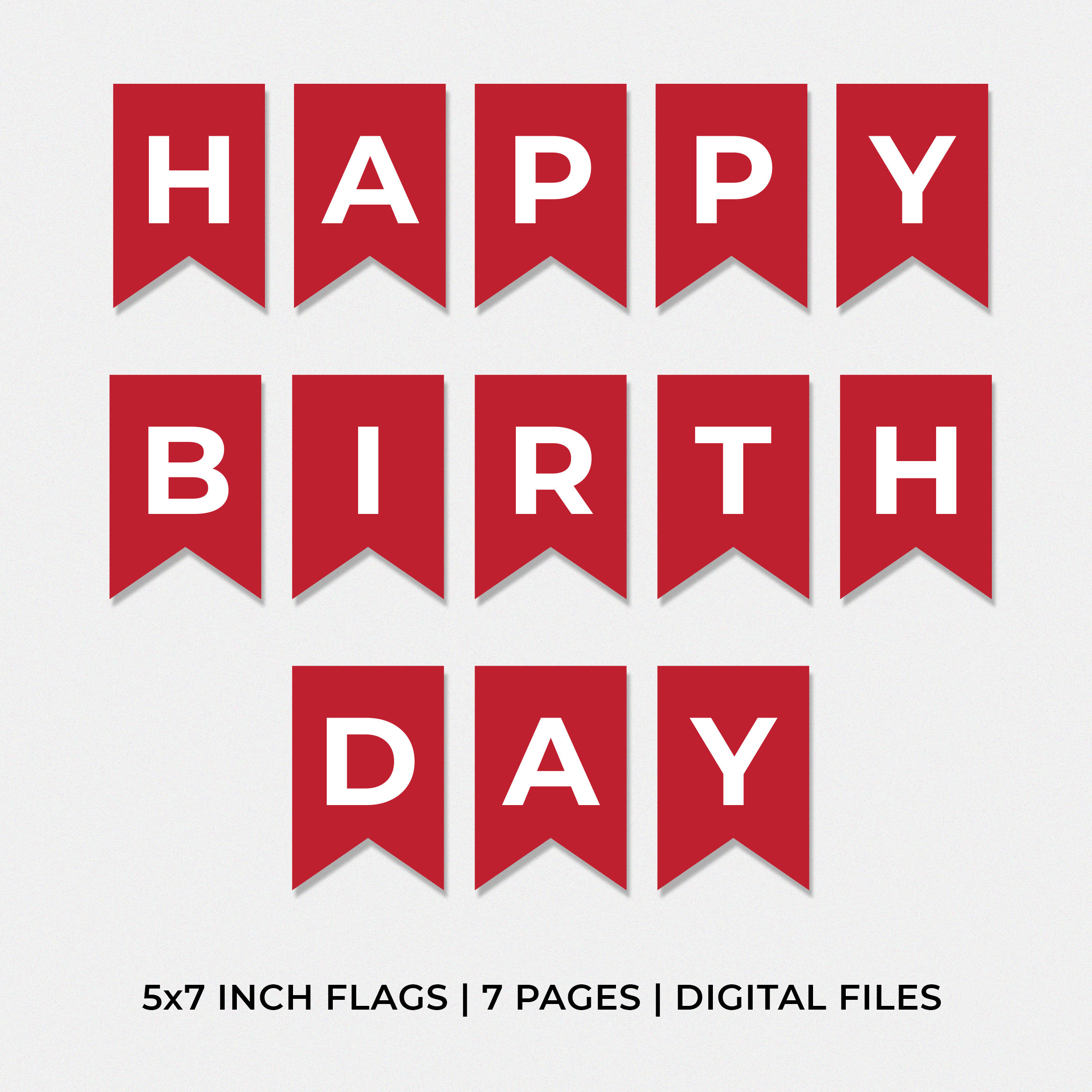 Happy Birthday Bunting Printable RED Birthday Banner Last Etsy