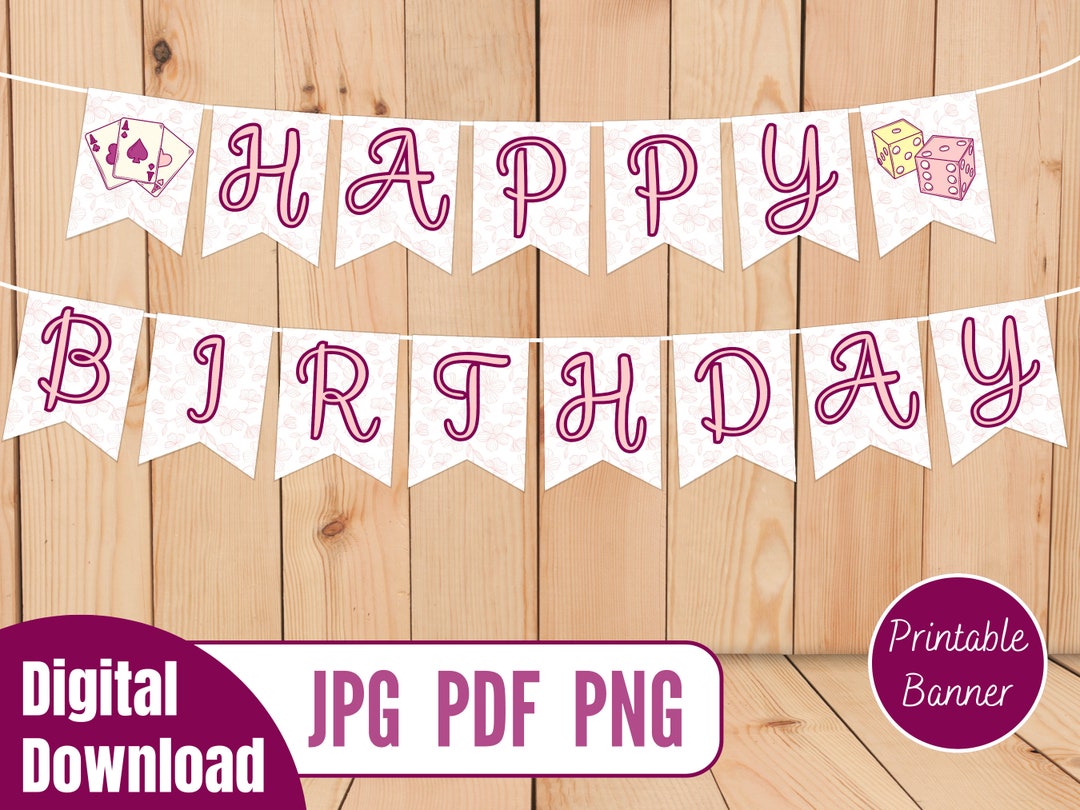 Printable Board Game Pink Happy Birthday Banner Ladies Casino Night