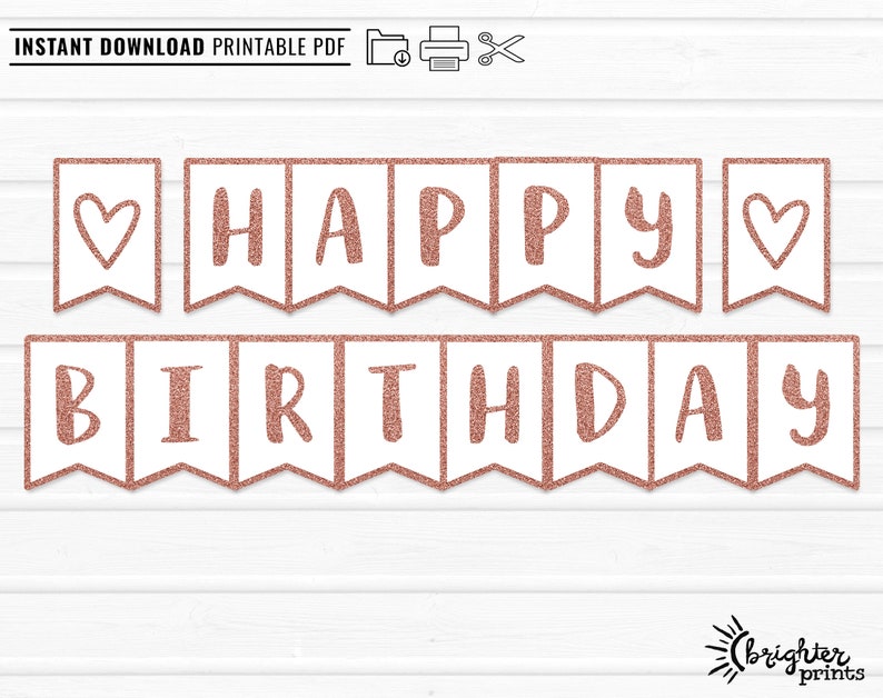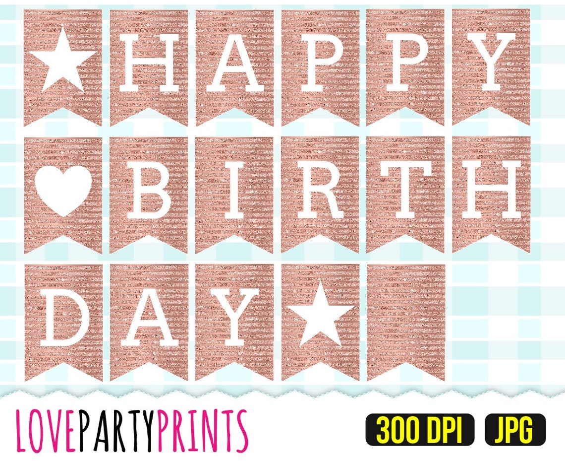 ROSE GOLD Happy Birthday Glitter Printable BANNER Birthday Etsy