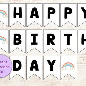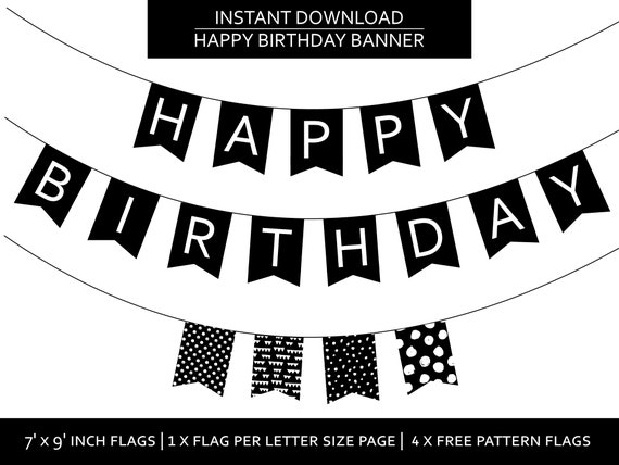 Happy Birthday Printable Banner Party Black White Simple Etsy