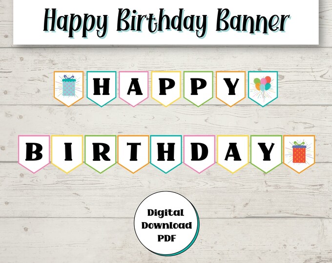 Printable Happy Birthday Banner INSTANT DOWNLOAD DIY Etsy