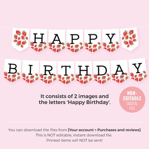 Printable Strawberry Happy Birthday Banner Template Instant Etsy
