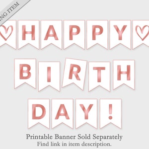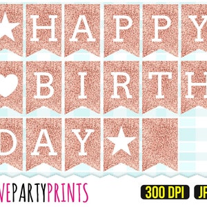 Printable Happy Birthday Rose Gold Glitter BANNER Birthday Decor