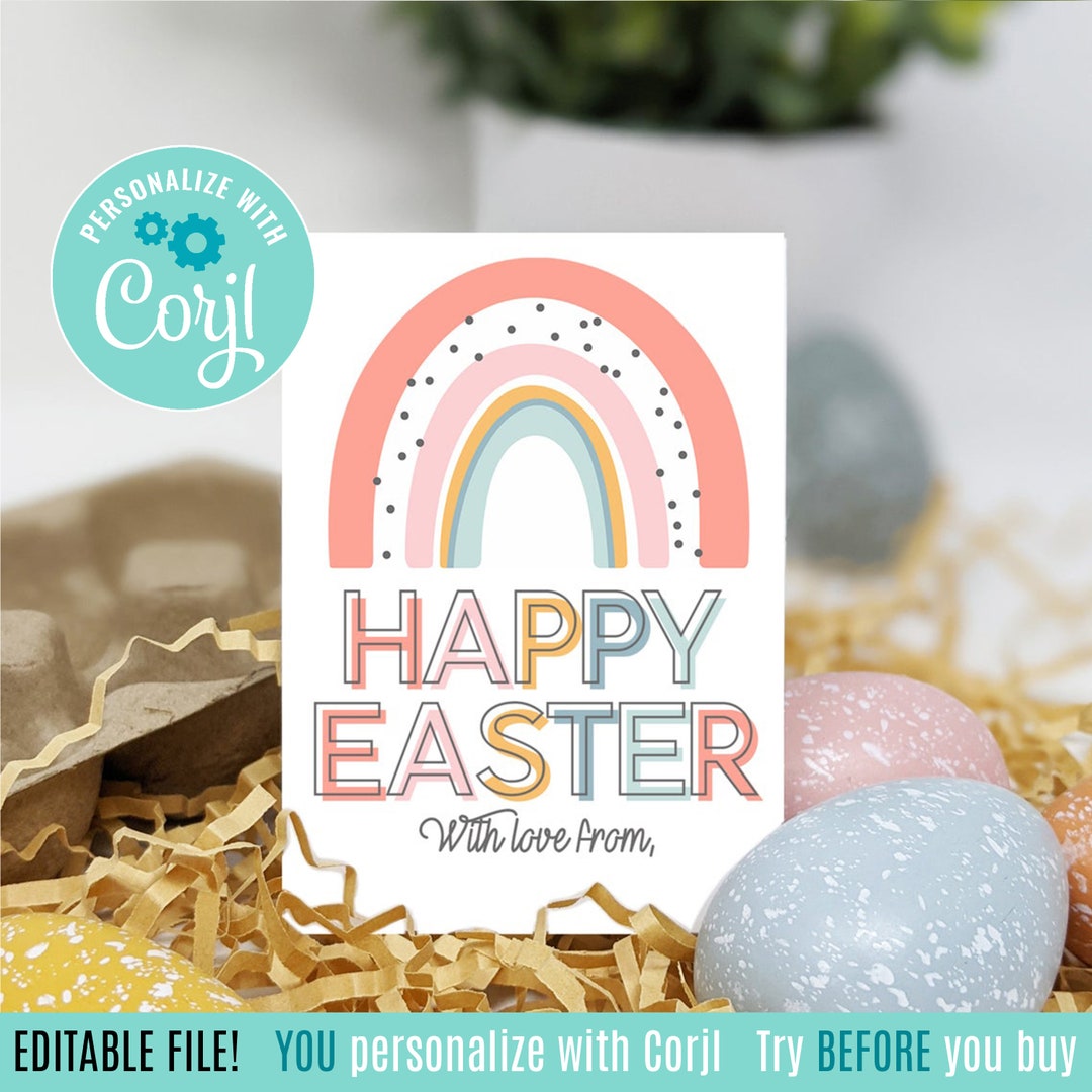 Editable Happy Easter Printable Tags Boho Rainbow Easter Gift Office
