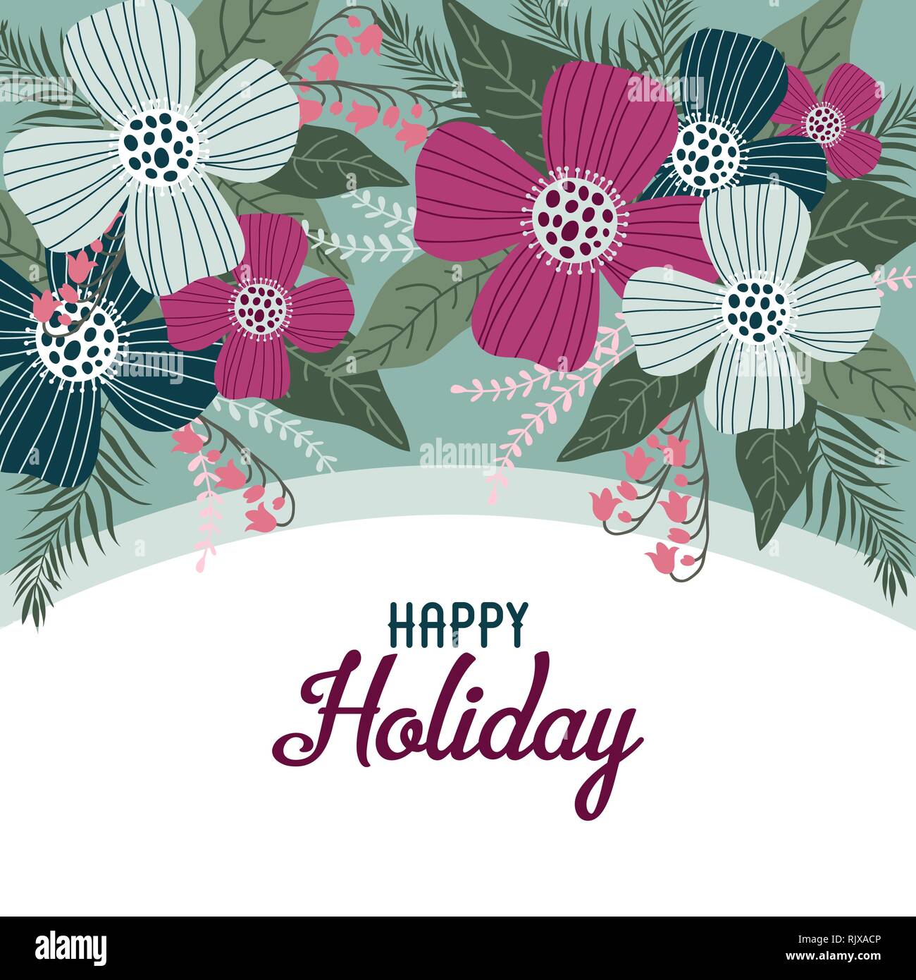 Happy Holiday Template for Cards and Banners with Cute Doodles Flowers