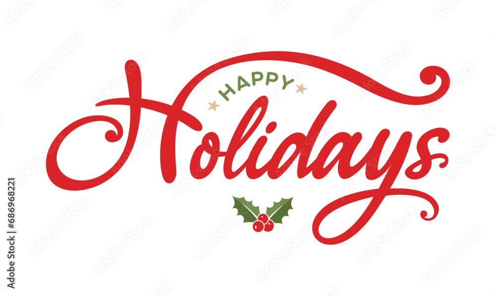 Happy Holidays printable banner card with Happy Holidays in cursive