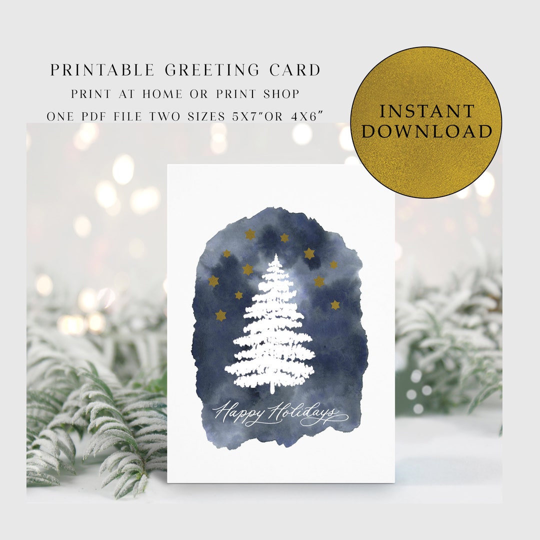 Happy Holidays Printable Card / Instant Download PDF / Etsy