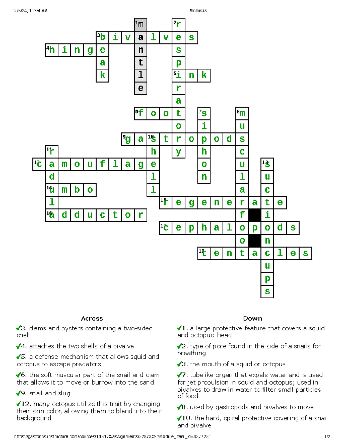 Mollusks Crossword Puzzle 2/5/24 11:04 AM Mollusks Studocu