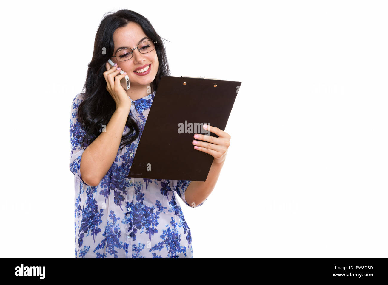 Happy latin lady holding hi res stock photography and images Alamy