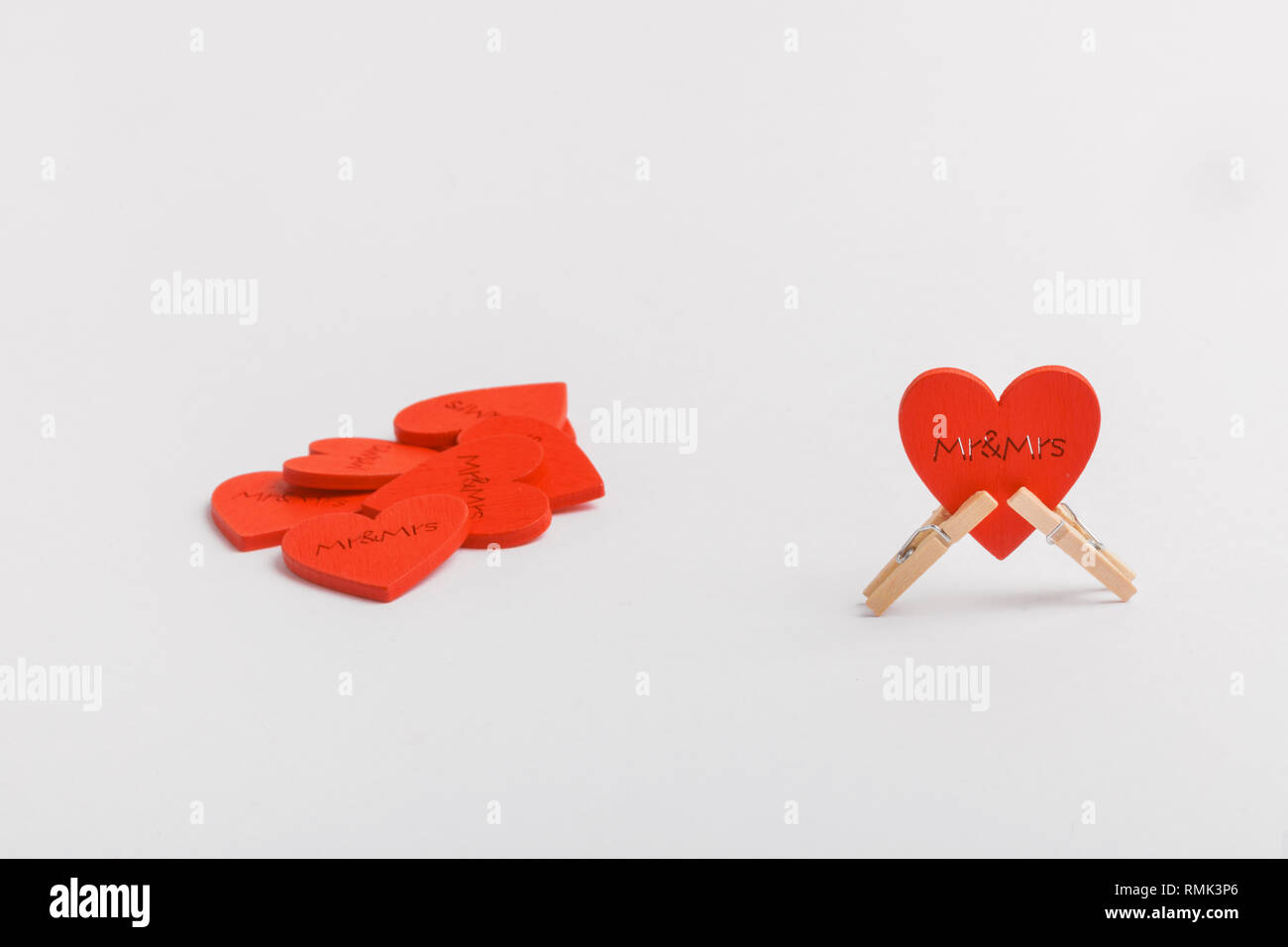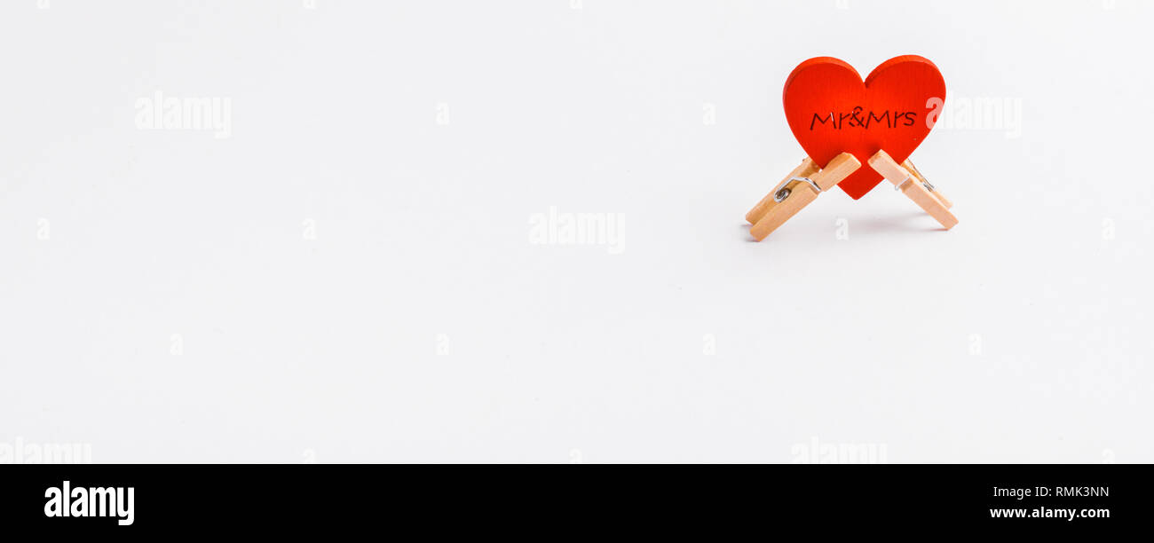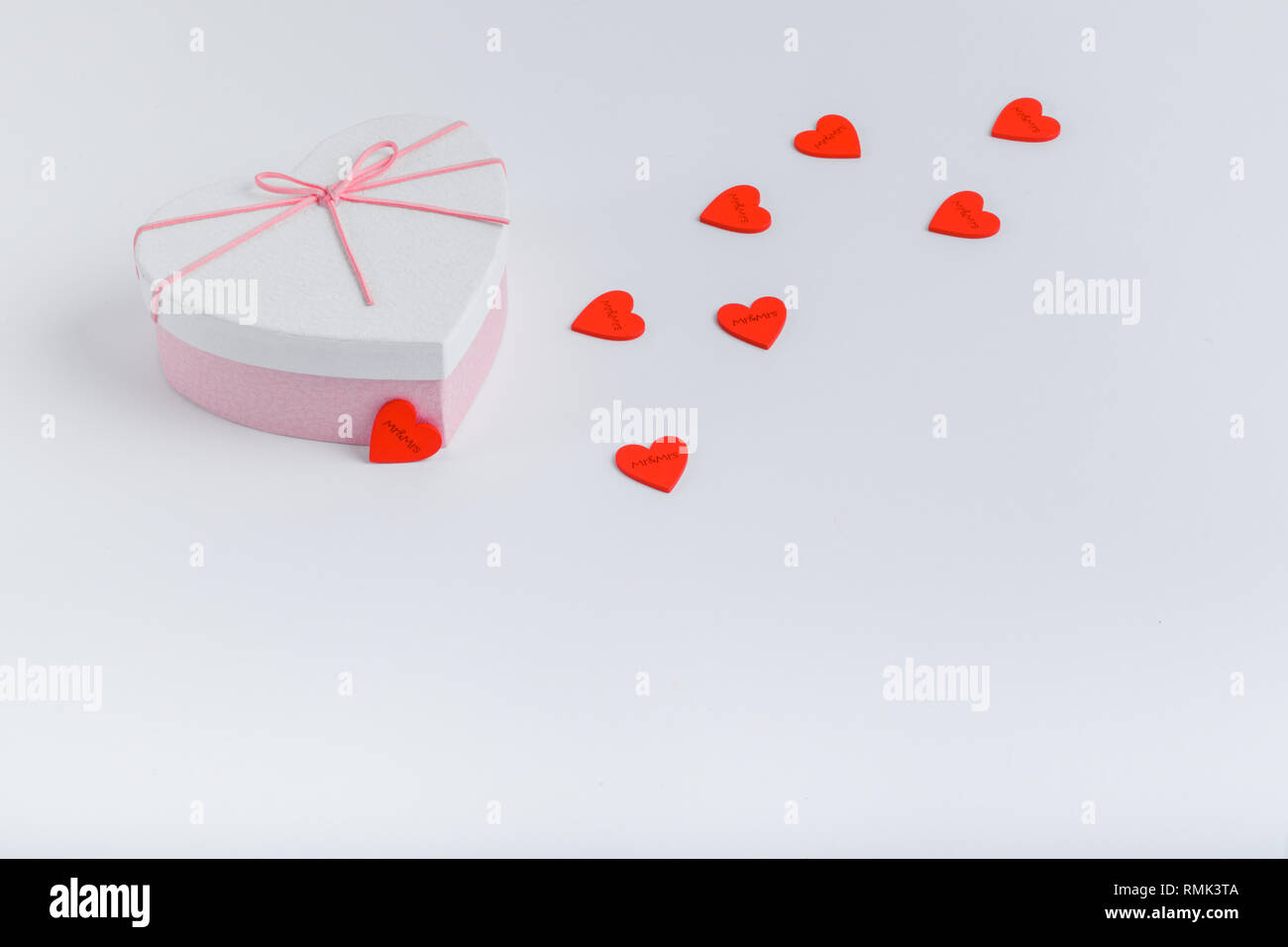 Happy Valentines Day card with love harts book and quill Stock Photo