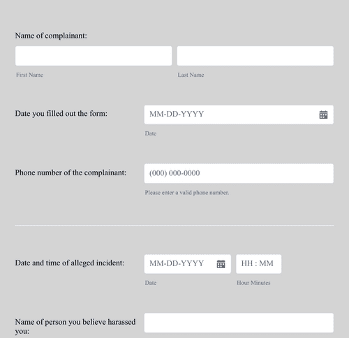 Sexual Harassment Complaint Form Template 123FormBuilder