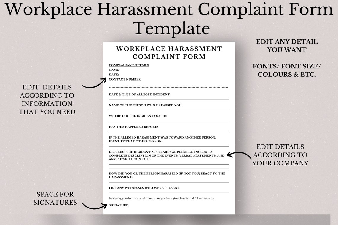 Sexual Harassment Complaint Form Template Editable Instant Download