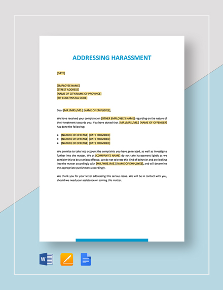 Letter Template For Employee Harassment Report Free Samples in PDF
