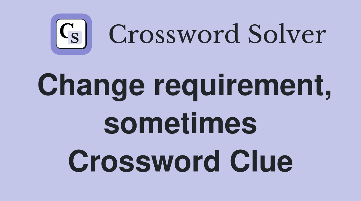 Change requirement sometimes Crossword Clue Answers Crossword Solver