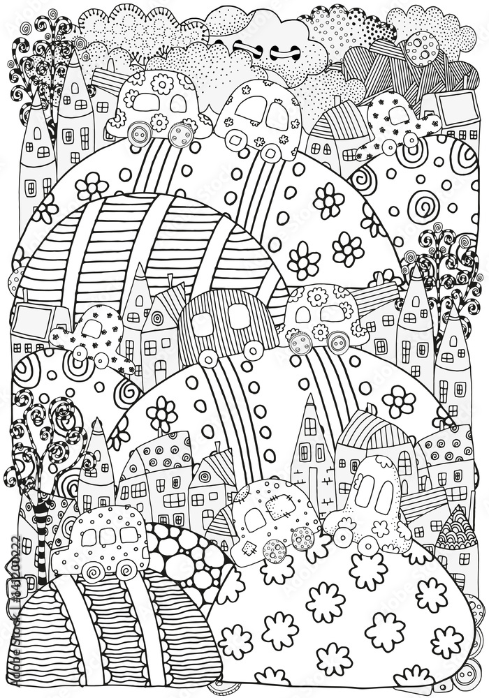 Doodle Landscape Coloring Page For Adults Fantastic Psychedelic