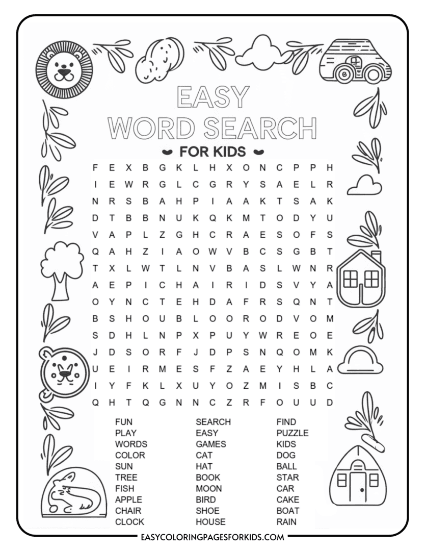 Kindergarten Easy Word Search for Kids (2 Free PDF Pages) Easy