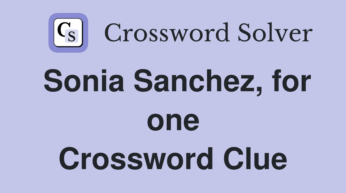 Sonia Sanchez for one Crossword Clue Answers Crossword Solver