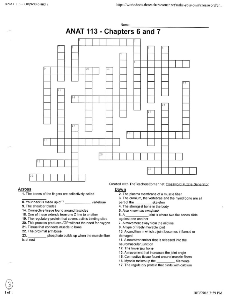 Bone Musc Crossword PDF