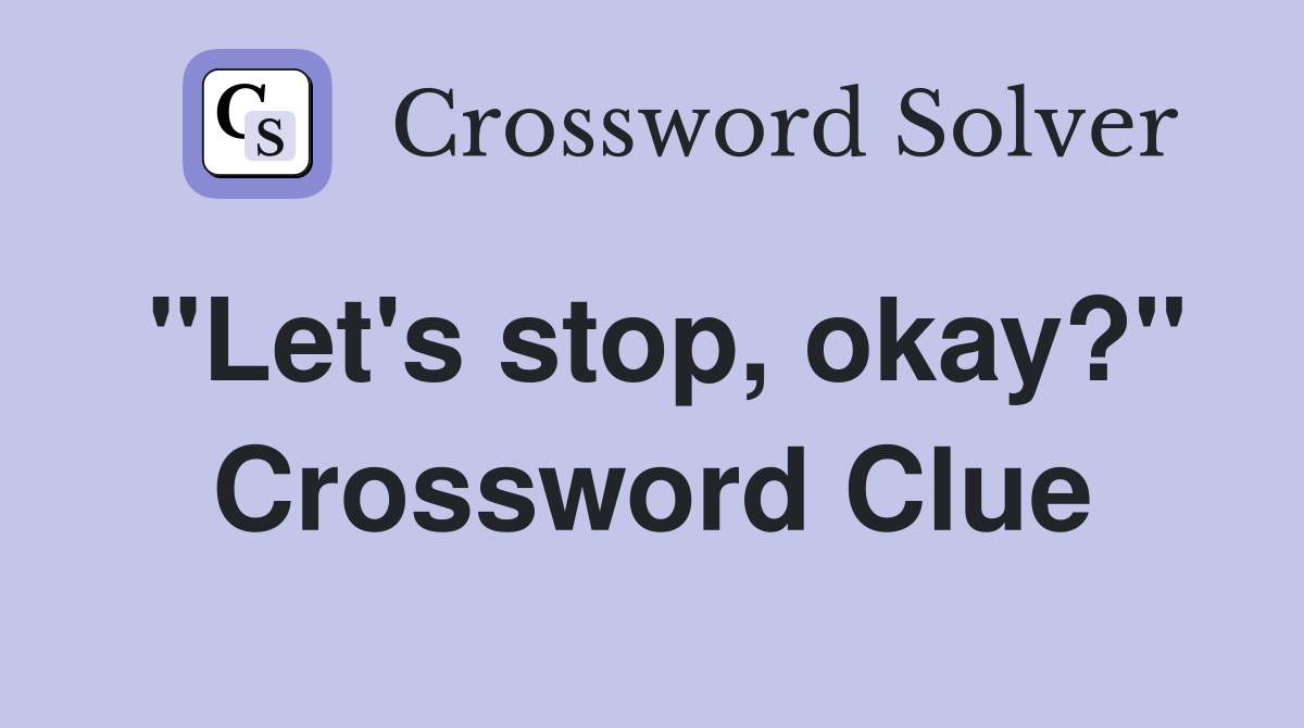 quot Let #39 s stop okay? quot Crossword Clue Answers Crossword Solver