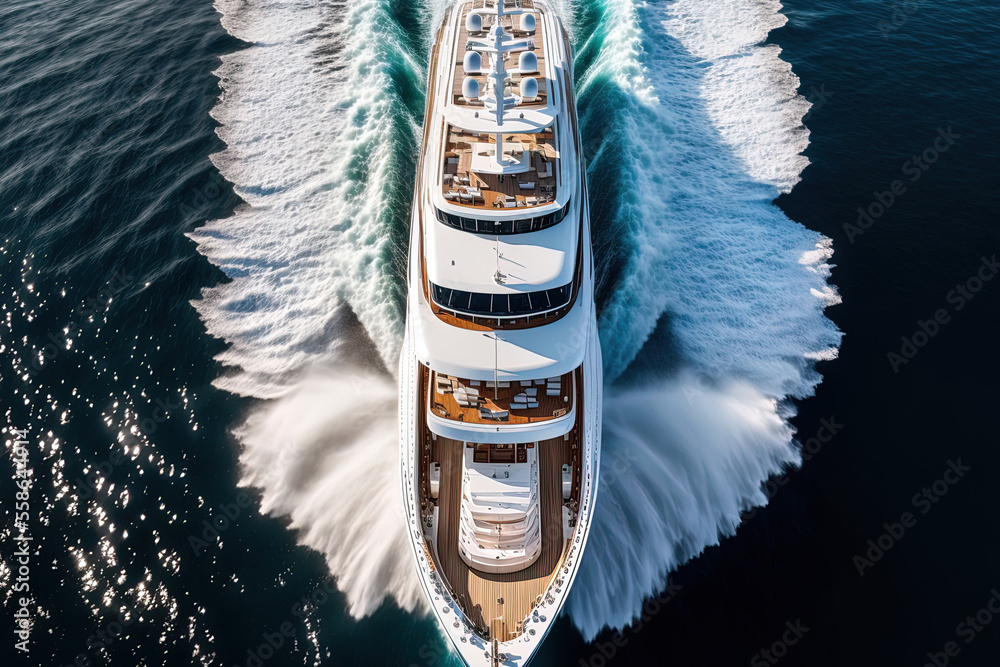 Beautiful contemporary mega yacht with hardwood deck captured in an
