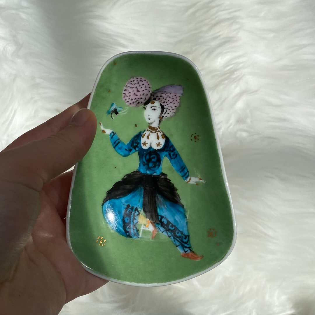 Rare Vintage 1960s Set of 3 Merlin Hardy Green Decorated Dishes Hand