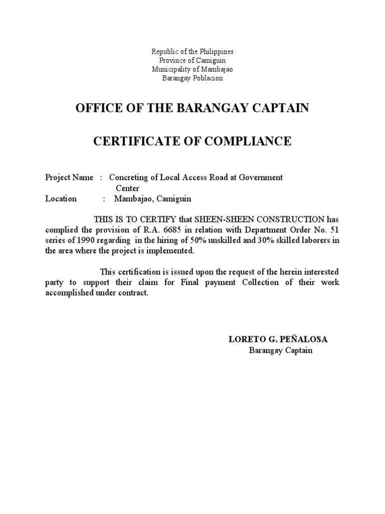 Certificate of Compliance Template MbcVirtual