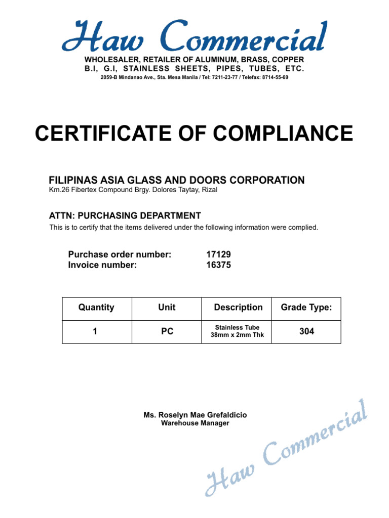Certificate of Compliance PDF