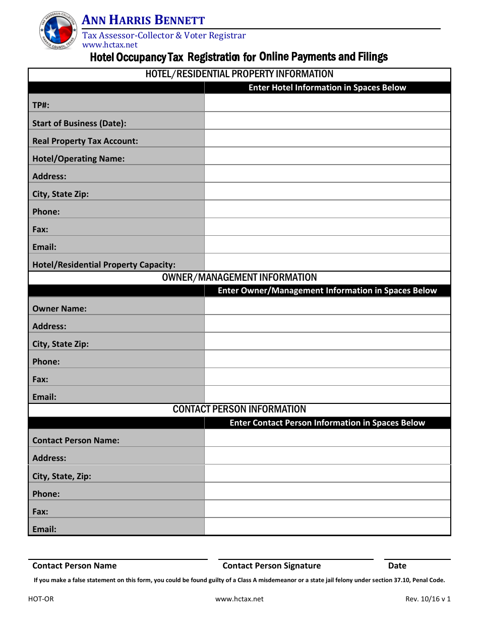 Form HOT RA Fill Out Sign Online and Download Fillable PDF Harris
