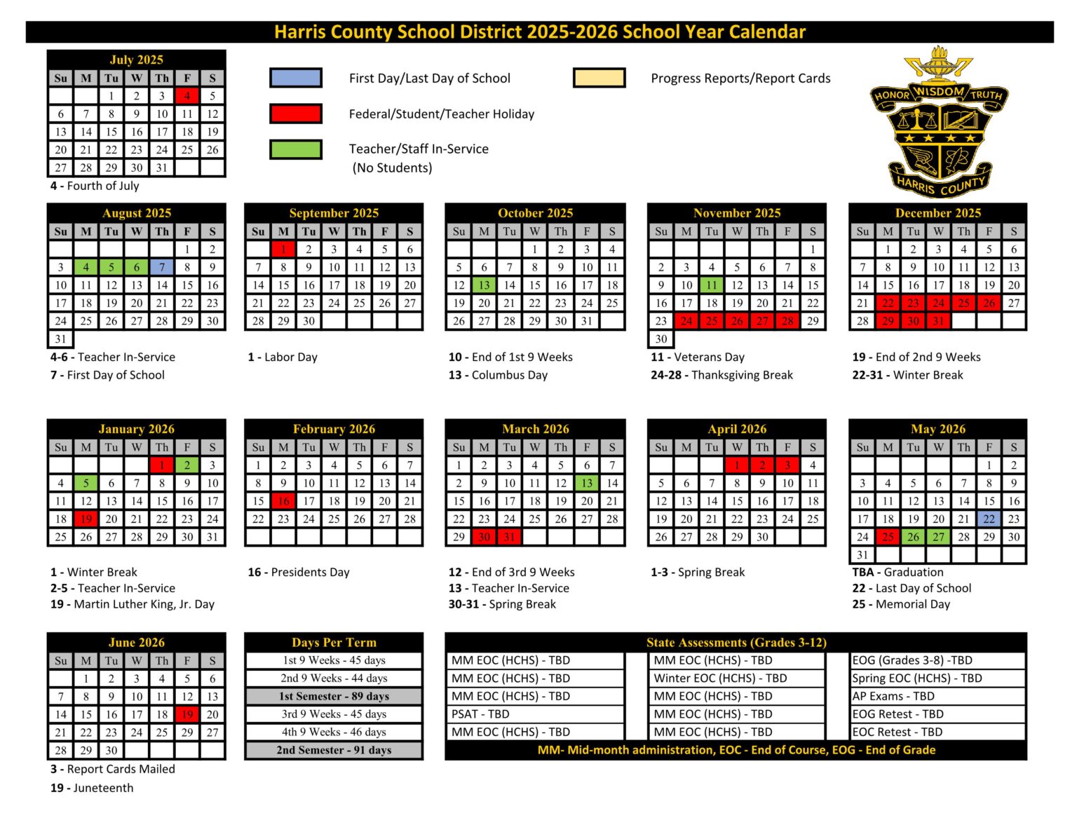 Harris County Schools Calendar