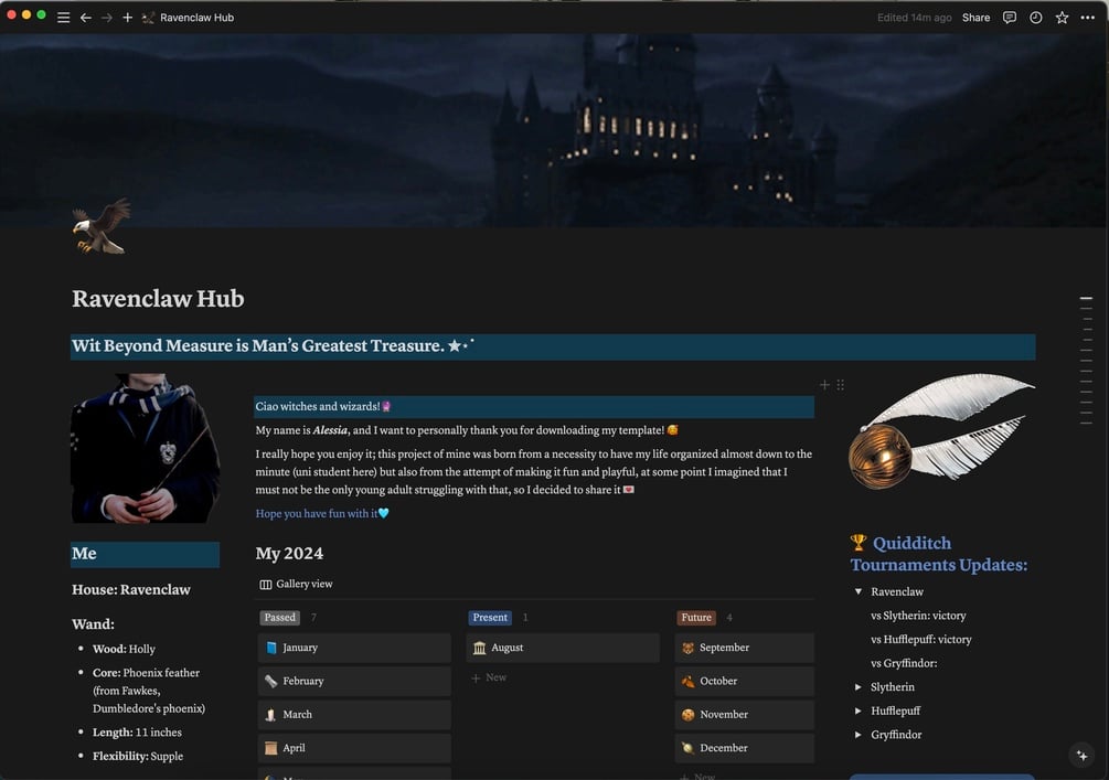Notion Template Harry Potter Ravenclaw Life Second Brain