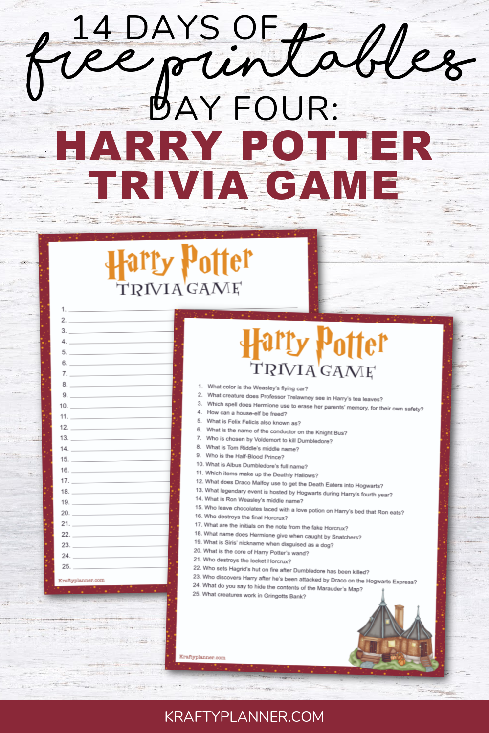 DAY 4: Free Printable Harry Potter Trivia Game Krafty Planner