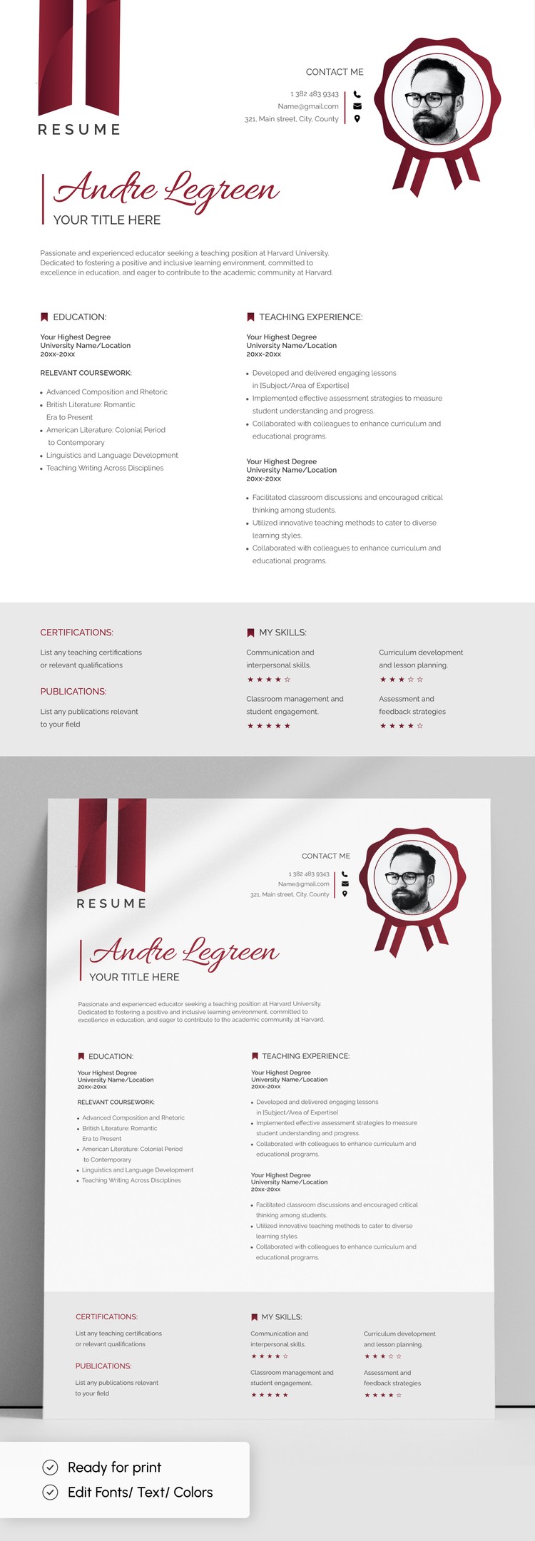 Free Harvard Red Resume Template in Google Docs and Microsoft Word