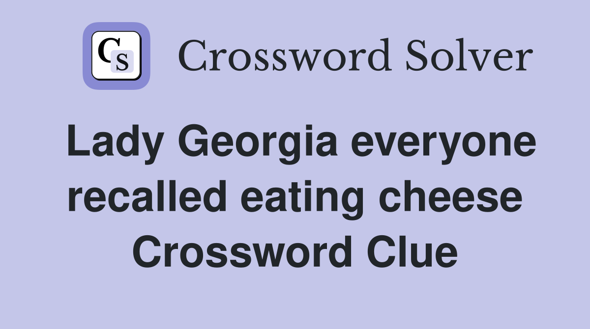 Lady Georgia everyone recalled eating cheese Crossword Clue Answers