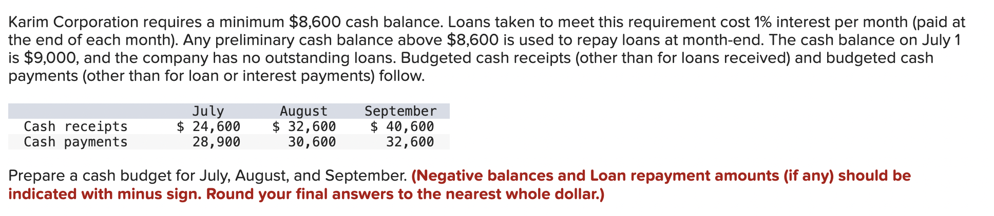 Solved Karim Corporation requires a minimum $8 600 cash Chegg com
