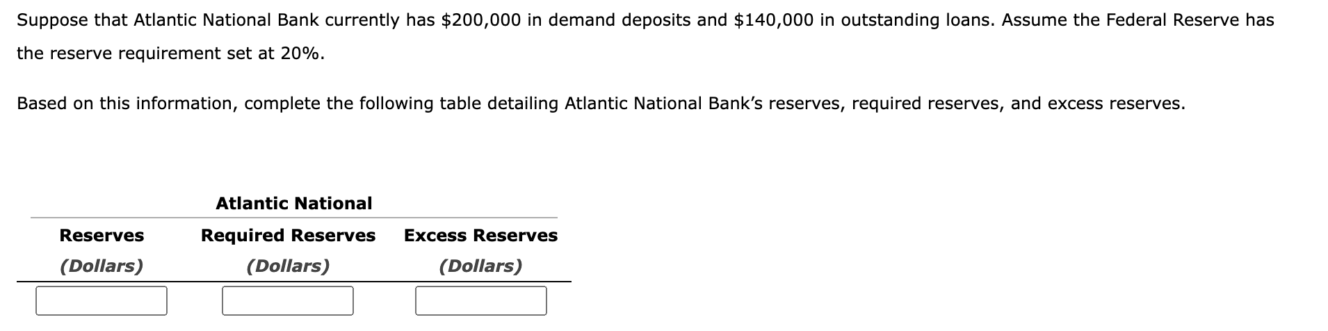Solved Suppose that Atlantic National Bank currently has Chegg com