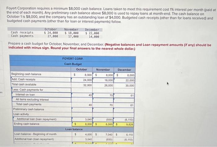 Solved Foyert Corporation requires a minimum $8 000 cash Chegg com