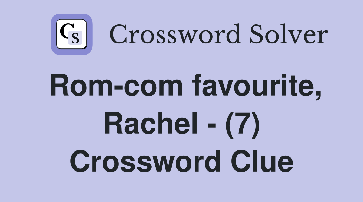 Rom com favourite Rachel (7) Crossword Clue Answers Crossword Solver