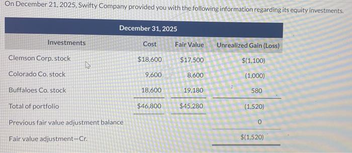 Solved December 21 2025 Swifty Company provided you with Chegg com