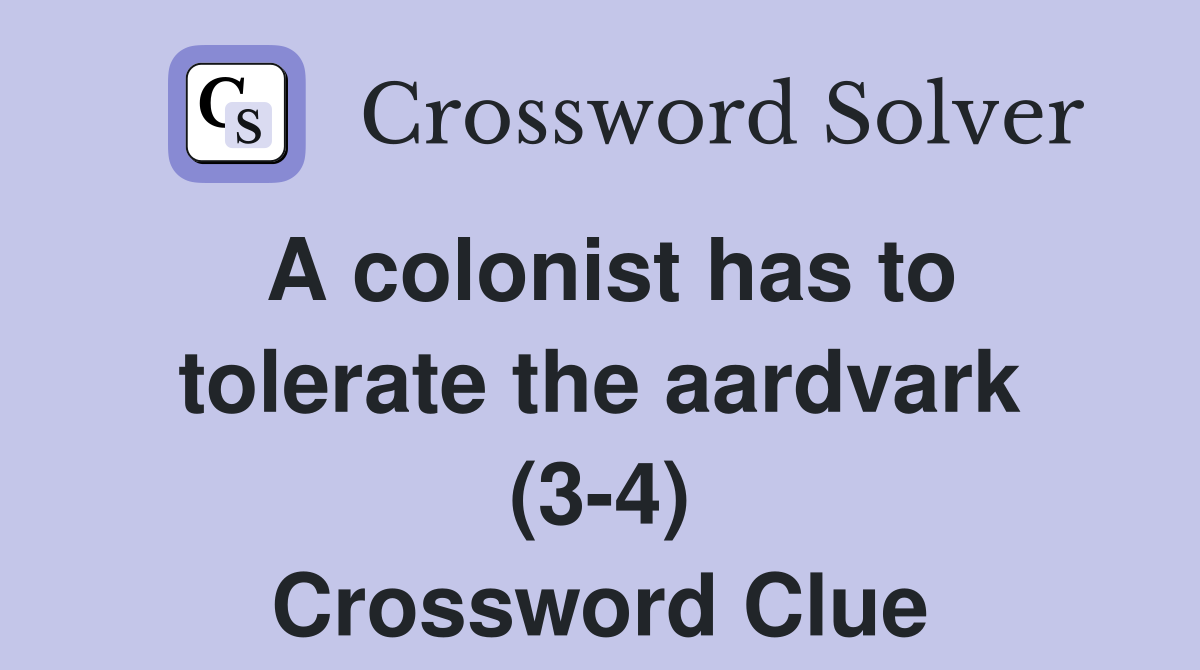 A colonist has to tolerate the aardvark (3 4) Crossword Clue Answers
